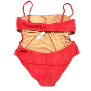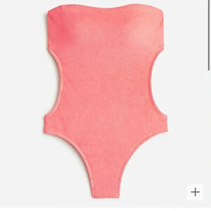 New J Crew Cutout One Piece Bandeau Swimsuit Size 24 Coral Terry Cloth