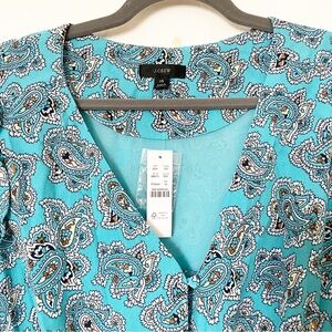 New. J. Crew Fall Midi Paisley Puff Sleeve Button Up Dress Size 16