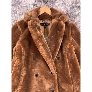 New J Crew Faux Fur Peacoat XS Womens Brown Double Breasted