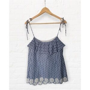 New J. Crew Gingham Ruffle Top with Eyelet Trim Size 8