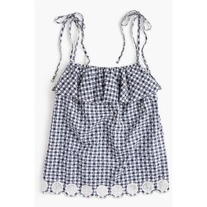 Brand new without tags J. Crew Gingham Ruffle Top with Eyelet Trim. Size 8.