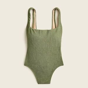 New NWT J. Crew Green Textured Square Neck One-Piece Swim Bathing Suit Women's Size 24