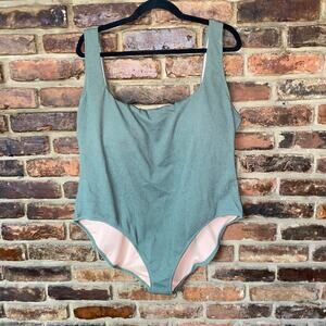 New J. Crew Green Textured Square Neck One-Piece Swim Bathing Suit Women's 24