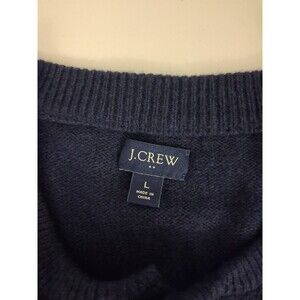 New J Crew Mens Sweater Wool Blend Navy Blue Large Henley Button V-Neck Preppy