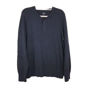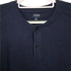 New J Crew Mens Sweater Wool Blend Crewneck Navy Blue Button Chest Henley Large Jumper.