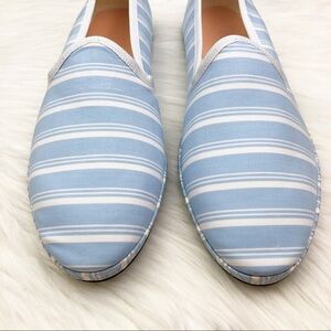 Brand new in box. Slip on style loafers in light blue and white stripes. Fabric upper and lining, rubber sole. Reasonable offers always welcome! 💕