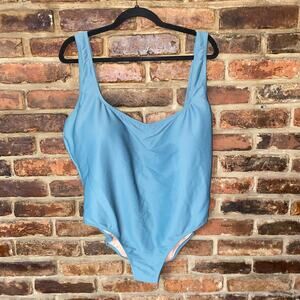 New J. Crew Teal Green Ribbed Square Neck One-Piece Swim Bathing Suit Size 22