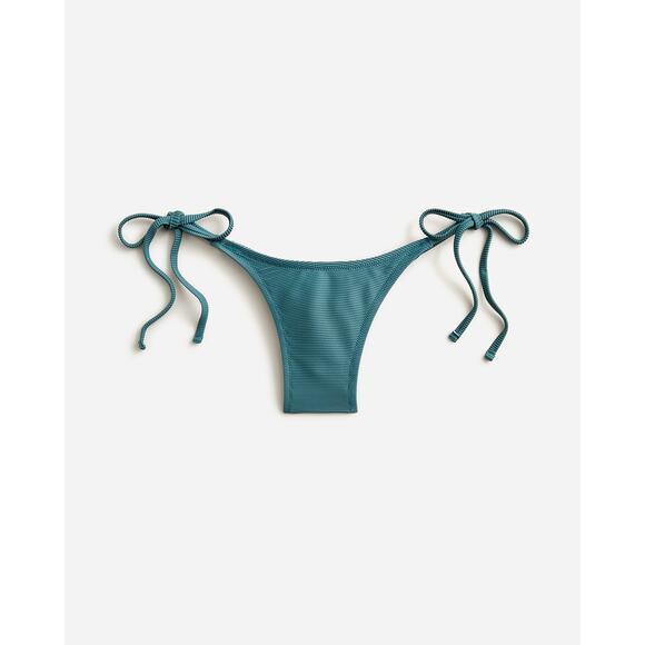 New NWT J. Crew Teal Ribbed Curved Waist Cheeky String Side Tie Bikini Swim Bathing Suit Bottom Women's Size Large