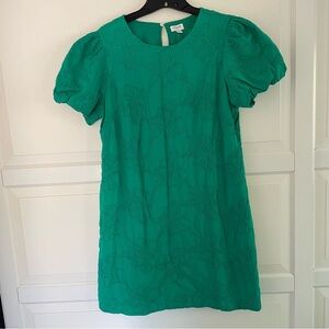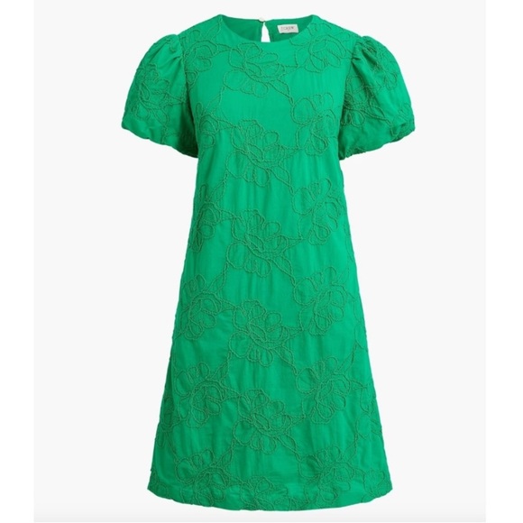 J Crew green embroidered puff sleeve shift dress. Style #C1022. NWT New with tags!