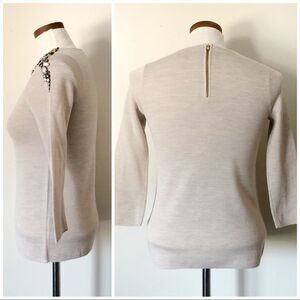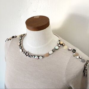 New J. Crew Jeweled Tan Crewneck sweater NWOT
