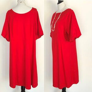 New J Jill Simple Elegance Puff Sleeves Dress In Red Cherry Size 2XL