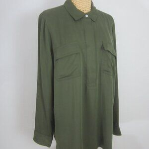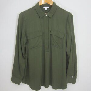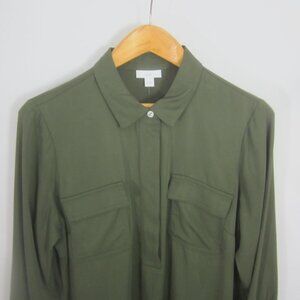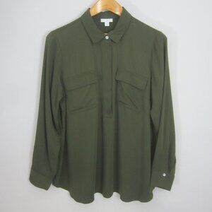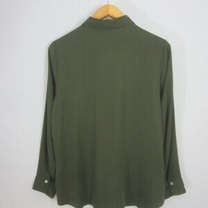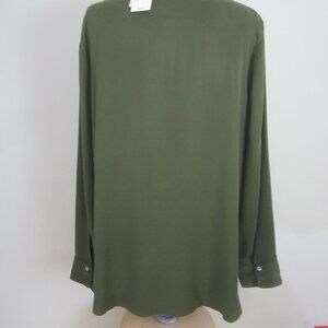 New J Jill Womens Medium Olive Leaf Green LS Rayon Shirt Blouse Pockets NWT $89
