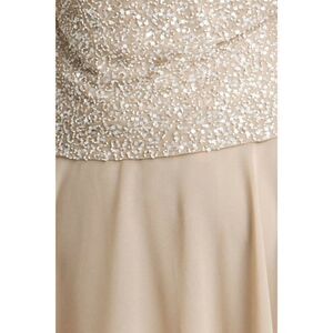 New! J KARA Women's Beaded Sequined Cowl-Neck Chiffon Dress Size 12 Color Beige