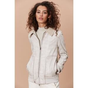 New JAKETT Bess Aviator Leather Jacket Fur Collar $640 SMALL Burnished Black