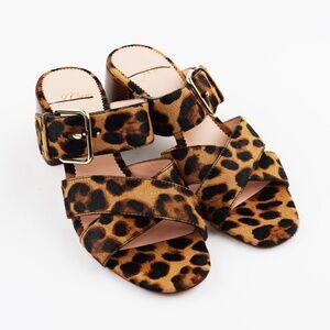 New J.CREW Penny Slide Sandals in Leopard Calf Hair