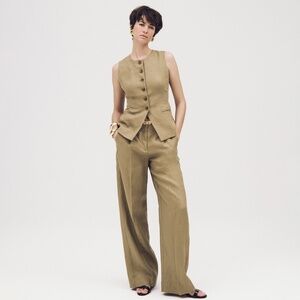 New JCREW Size 4 Wide Leg Essential Pant in Linen Dusty Fatigue $128 BW528