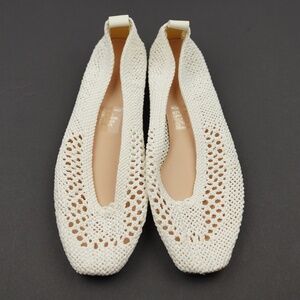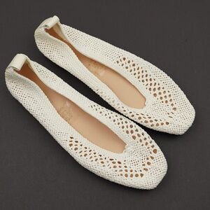 New JCREW Size 9.5 Square-Toe Crochet Ballet Flats in Ivory $198 CJ769