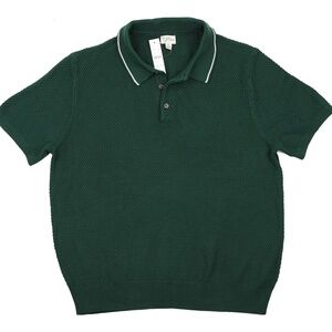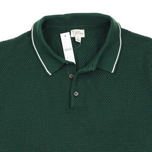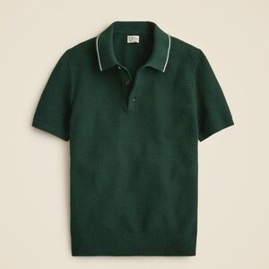New JCREW Size L Short Sleeve Cotton Seed-Stitch Sweater Polo Darkest Dark Green