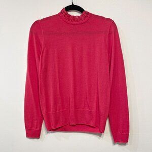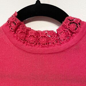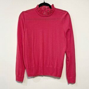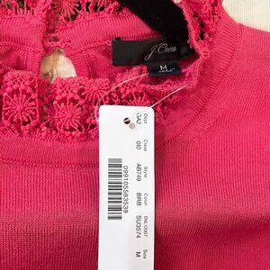 New J.Crew 100% Merino Wool Tippi Lace Collar Sweater Rose Pink M $128