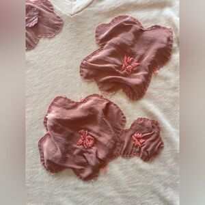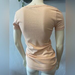 Chic short sleeve tee with floral appliqué. Soft peach color. Ideal for casual elegance. New without tags please see pictures for measurements.