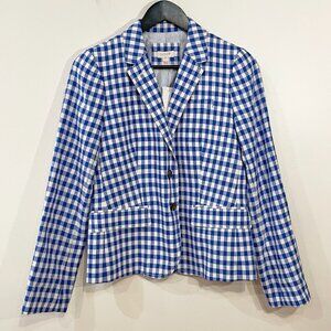 New J.Crew Campbell Linen Cotton Gingham Blazer Blue 6 $148