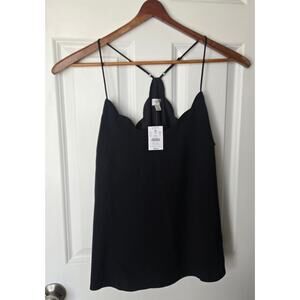 New J.Crew Classic Scalloped Camisole Cami Blouse Adjustable Strap Black Size 12