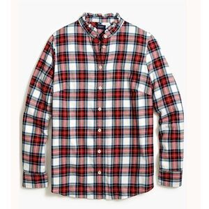 J. Crew plaid flannel button down with ruffled collar. Armpit-to-armpit 21”, sleeve 23.5” and length 39”. Brand new with no tags attached.