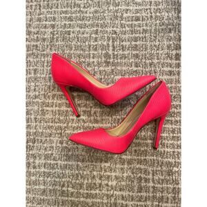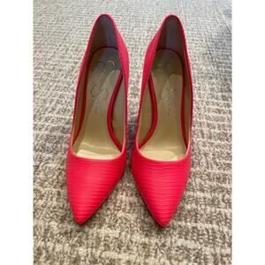 These shoes are a new pair of 4" heel stilettos by Jessica Simpson in a coral pink color. These women's shoes feature a pump style with a faux leather upper material. The brand Jessica Simpson is known for its quality and stylish footwear, making these heels a fashionable and trendy choice for any outfit. The size 7.5 ensures a comfortable and secure fit for the wearer.