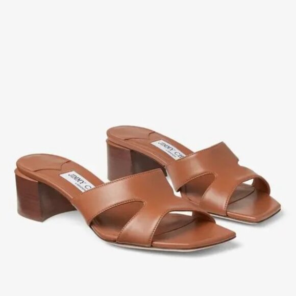 New JIMMY CHOO ELLISON MULE 45 NAPPA LEATHER CUOIO