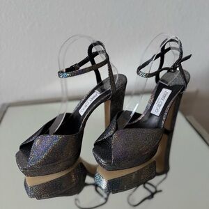 New JIMMY CHOO Sacaria Glitter Platform Sandal $925 40