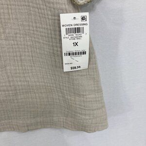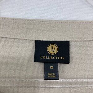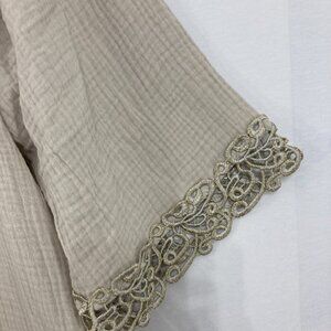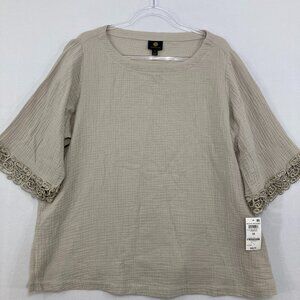 New JM Collection size 1X Gray Gauzy Cotton Lace Detail Relaxed Blouse Vacation