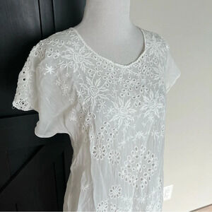 NWT Johnny Was Vice Slip Eyelet-Embroidered Drop-Waist Dress White Small