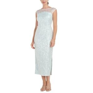 New JS COLLECTIONS Women's Aqua Cap Sleeve Midi Evening Sheath Dress Size 8