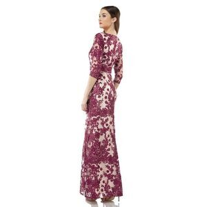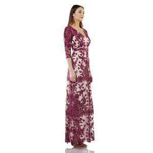 New! JS COLLECTIONS Women's Embroidered Lace Gown Dress Color Wine Rose