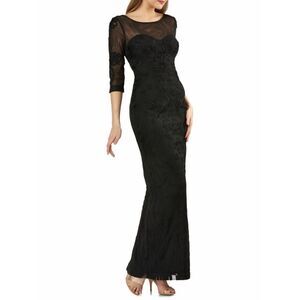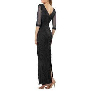 New! JS COLLECTIONS Women's Soutache Embroidered Black Dress Gown 3/4 Sleeve