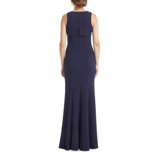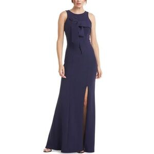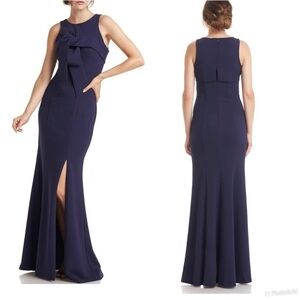 New JS Collections Leona Bow Detail Maxi Dress Gown Slit Navy Blue Sz 4