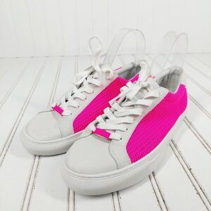 New J-Slides Neon Pink Lace Up Platform Sneakers H1036