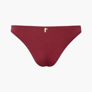 Our Juan de Dios Mezcal Bottom in Wine features a low rise silhouette with a colorblocked design and pleated accents on the side.