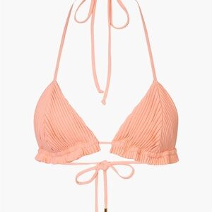 Our Juan de Dios Guadalupe Top in Rose features a classic triangle silhouette with pleated accents and ties that knot at the back and at the neck.
