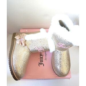 New! JUICY COUTURE Girls Mendota Gold Glitter Faux Fur Boots Booties Shoes