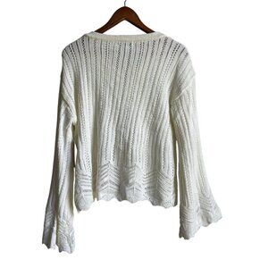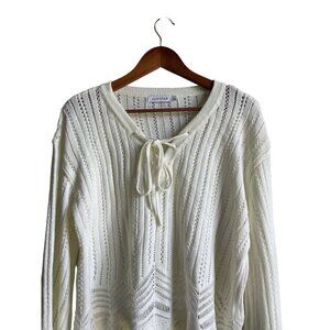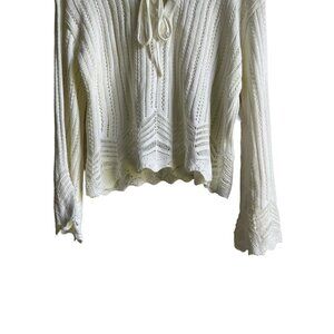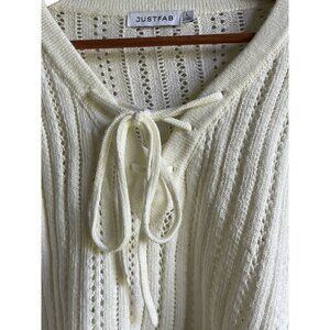 New! JUSTFAB Size Large Cream V-Neck Tie Front Pullover Cropped Sweater Boho Bohemian