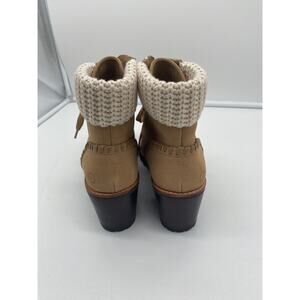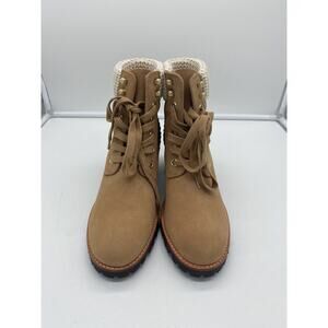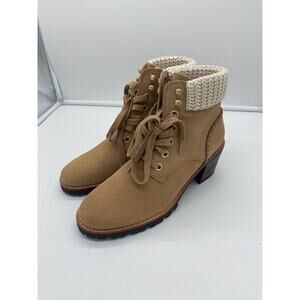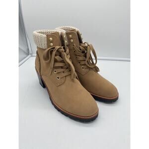 New Jack Rogers Harper Suede Lace Up Hiker Knit Block Heel Boots Wheat Size 10M