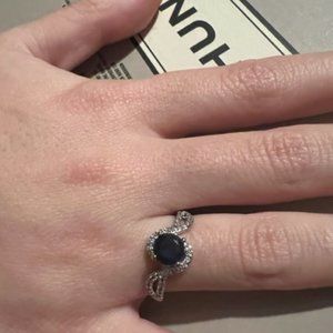 New Jackpot Candles silver tone ring with dark blue center stone in size 6
