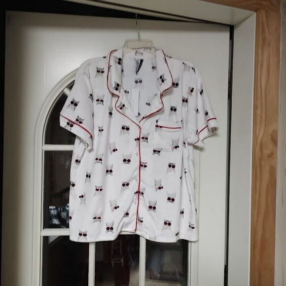 New with tag jaclyn intimates shorts pajama set size women's XL. They are white with cats with heart sunglasses shirt is 22 inches across and 24 inches long shorts inseam 3 inches.