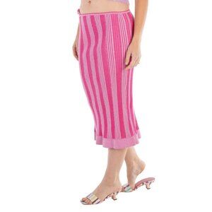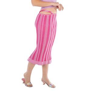 Jacquemus Ladies Multi-Pink La Jupe Gelato Knitted Skirt. KNitted from a cotton blend, this skirt features vertical-stripe detailing in a two-tone palette, a cutout detailing on the waist, a front slit, mid-length and finished with a fitted silhoutte. Cotton 60%, Polyamide 36%, Spandex/Elastane 4% Made in Italy.