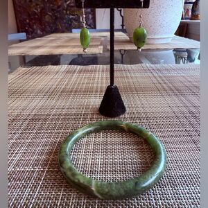 New Jade Bangle Bracelet & Coordinating Dangling Green Earrings.