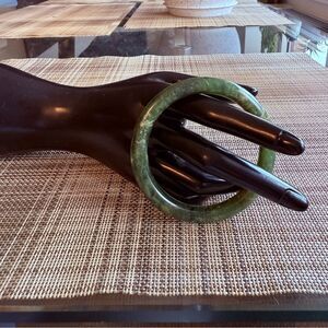 New Jade bangle bracelet in green marble plus New Jade dangle earrings with French ear wire.
