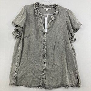 New Jane and Delancey size 1X Gray Acid Wash Flutter Sleeve Chambray Button Down