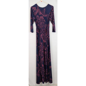 New Janette sz L Faux Wrap Long Maxi Dress navy berry 3/4 sleeves stretchy 1815