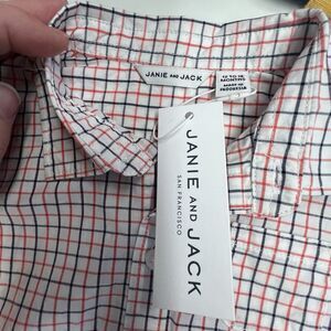 New Janie and Jack Baby Button Up Red Blue Plaid One Piece 12-18m